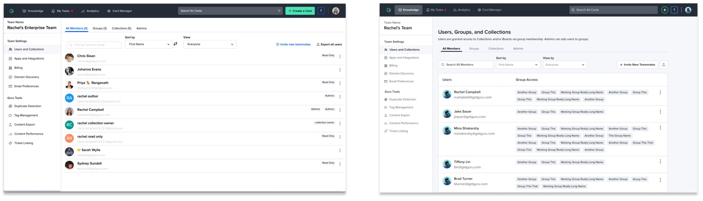 Research told us our users top need was adding search and sorting functionality, as some larger teams have upwards of 500+ users and scrolling long lists is cumbersome.